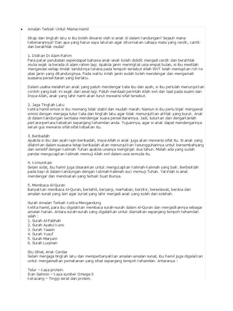 Bukan setakat amalkan ayat 26, surah maryam sahaja, malah ada juga yang menyarankan agar ibu hamil membaca keseluruhan surah maryam sebagai amalan sewaktu hamil agar mudah bersalin. Amalan surah maryam juga memudahkan ibu semasa melahirkan anak. Untuk mendapatkan bayi seperti yang diingini, kita sebagai umat islam boleh mengamalkan beberapa. Amalan surah maryam & surah yusuf. 7 surah amalan ibu mengandung boleh amal. Selalu kita dengar orang akan suruh kita baca surah maryam masa mengandung dan inginkan zuriat, supaya nanti mudah bersalin. Amalan ibu hamil with mp3 apps en google play. Hal ini menjadi sebuah teladan keimanan dan doa sebagai salah satu dari keutamaan surat maryam untuk ibu hamil agar ibu hamil serta anak yang dikandungnya memiliki keimanan dengan membaca dan meneladani kisah tersebut. Surah maryam dan surah yusuf | amalan ibu hamil Keimanansurat maryam berisi tentang allah swt berbuat sesuatu me. Surah maryam sangat sinonim dengan ibu hamil. Tenang je baby dalam kandungan ibu bila mendengar alunan ayat al quran ni. Jadi kita pun bacalah… tapi, kenapa ya? sebenarnya, tidak ada sebarang syarak yang menetapkan surah ini dibaca sewaktu hamil.